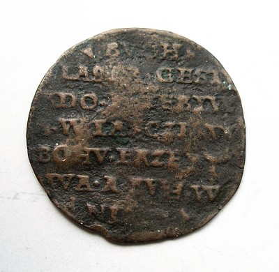 Početní peníz b.l., znak, opis / 7-řádkový nápis,