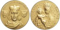 52 000 Kč neprodáno | Národní numismatická epopej I. - králové, vojevůdci, intelektuálové, umělci b.l. Karel IV., Přemysl Otakar II., Jan Hus, J. A. Komenský, Jan Žižka, Albrecht z Valdštejna, Bedřich Smetana, Antonín Dvořák. Poprsí osobnosti, data, opis / český lev, opis, ryté číslo (na jednotlivých medailích různé). U všech medailí rubní strana stejná. Autor L. Charvát. Au 0.9999, 25 mm, hmotnost všech medailí 57,2 g. náklad 3000 ks. Plexi pouzdro, společná sametová kazeta, certifikát 8 ks LR | | |