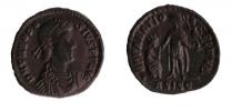AE 3, L: ověnčená hlava zprava, DN VALEN - S PF AVG, R: kráčející Victoria s věncem zleva, SECVRITAS REIPVBLICAE, K - P / P, dole SISC A, 2,28 g. S 4018 opis na R nedor., užší stř.