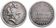 Johan Georg III. - na účast při osvobození Vídně 1683 - poprsí v přilbě zprava, opis / ratolest, 4-řádkový nápis a opis, Nesign., Ag 19mm, 5.226g, pěkná pat. R!