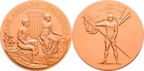 Los Angeles 1932 (pozdější) - X.letní olympijské hry sportovec a praporem / dvě ženy, dva znaky, opis, Nesign., zlacený bronz 50 mm