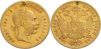 4 Dukát 1887 (pouze 26.947 ks), 13.875g, stopa po závěsu, dr.hr., vlas.rysky, patina