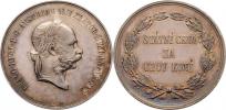 Schwartz - jubilejní živnost. výstava ve Vídni 1888 - císař na trůnu čelně mezi čtyřmi postavami/ 9-řádkový nápis ve vavřínovém věnci, Sign., bronz 64 mm, téměř