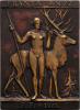 Španiel Otakar - PF 1930 - autoportrét při práci na dveřích chrámu sv.Víta, nápis, Sign., jednostranný patinovaný bronz 44x60 mm, Kr.10