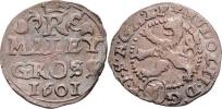 Malý groš 1601, K.Hora-Špís, HN.12b (opis 7a), nápis " MALEY / GROSS / 1601 ", 1.104g, oválný stř., nep.nedor., nep.dvojráz, pěkná patina