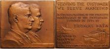 Tomáš Baťa a J.A.Baťa - 40.výročí firmy 1934 - dvojportrét zprava / starý a nový Zlín, anglický 10-řádkový nápis, Sign., patinovaný bronz 80x73 mm