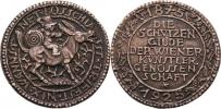 Schwaz 1877 - založení spolku a svěcení praporu - zbraně, zbroj a prapory ve věnci / 7-řádkový nápis ve věnci, Nesign., cín 29 mm s pův.ouškem a stužkou