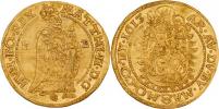 Dvoudukát 1642/1963 - značená novoražba, arcivévoda na koni zprava, město v pozadí, opis / stojící svatý Leopold, opis a znaky v kruhu, 6.978g