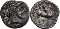800 EUR 22 124 Kč neprodáno | Av.: Stylizovaná vousatá hlava Dia doleva s trojitým vavřínovým věncem Rv.:Stylizovaný jezdec doleva, trojice teček do trojúhelníku na hrudi, před koněm ležící V, mezi předníma nohama Π, pod koněm triskeles 11,56 g, 24,3 mm, Ag, Göbl 1973a, č. 436/4; Dembski 1998, č. 1363; Kostial 2003, č. 729; Ziegaus 2010, č. 565 About EF | | |