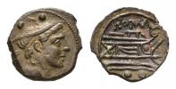150 GBP 4 897 Kč 220 GBP 7 183 Kč | Mn. Fonteius C.f. Denarius circa 85, AR 23mm., 3.81g. MN·FONTEI C·F Laureate head of Apollo right; below, thunderbolt and below chin, RA ligate. Rev. Cupid on goat right; above, pileii. In exergue, thyrsus. The whole within laurel wreath. B. Fonteia 9. Sydenham 724. Crawford 353/1a.Iridescent tone, struck on a very broad flan and good extremely fineEx Tkalec sale 2006, 106 and NAC 46, April 2008, 369 | | |