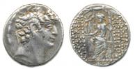 Tetradrachma, sedící Zeus na trůně drží žezlo, na rukou má bohyni Niké / Hlava krále zprava Sear 7196
