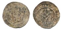 Denár - poprsí zprava, před sebou drží meč / anděl zleva klečící před palmovým stromem, před sebou drží prapor nález Ladná (z doby 2. křížové výpravy v letech 1147-48) PV 239 "RR"_nedor.