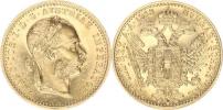 František Josef I. (1848-1916), 4 Forint = 10 Franken 1880 KB - I. typ, mladší portrét "RR"