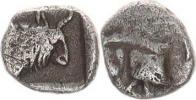 Starověké Řecko (5-4 stol. př. Kr.), Trihemitartemorion (3/8 obolu) 0,261 g, Hlava býka zprava