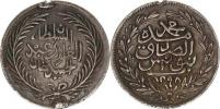 Piaster 1298 H (1881), Tunis KM 189 Ag 2,934 g "R" (viz TEMPELHOFER MÜNZENHAUS aukce 155 / č. 3515)_stopa