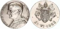 Paulus VI., Žeton ke zvolení 21.6. 1963. A: Busta vpravo, opis / Papežský znak, datace bílý kov 25 mm