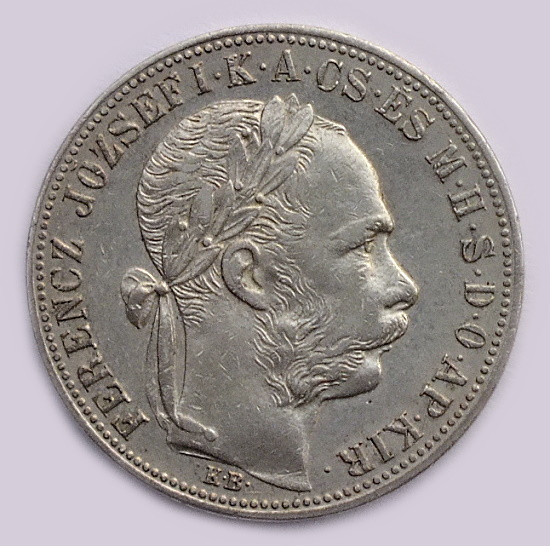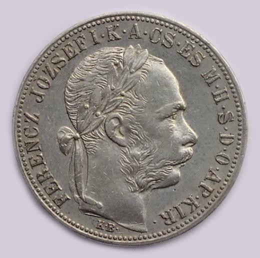 František Josef I., zlatník (forint, Gulden) 1885 KB uherského typu, mincovna Kremnica, originál, stříbro 900/1000, váha 12,34 g, průměr 29 mm, hrana s nápisem BIZALMAM AZ ŐSI ERÉNYBEN („důvěřuji starobylé ctnosti“), lepší ročník!