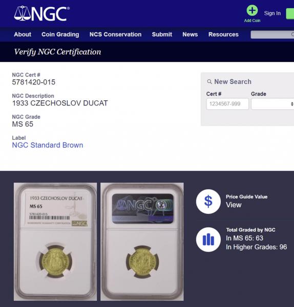 Svatováclavský dukát 1933, NGC MS 65 1933