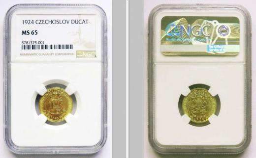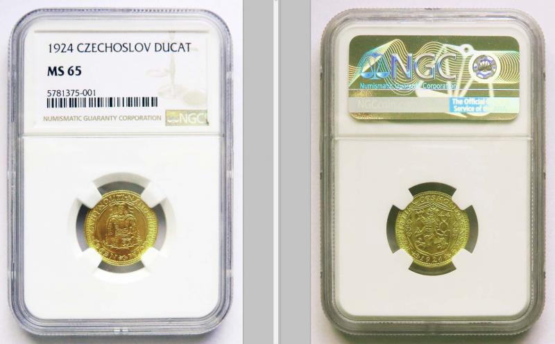 Svatováclavský dukát 1924, lepší ročník. Au 986 (dukátové zlato 23,7 karátů) - 3,49 g - vroubkovaná hrana - mincovna Kremnica - mince získala 65 bodů z max. možných 70 - pouze 14 mincí má vyšší hodnocení - certifikace NGC = záruka pravosti a jakosti. Poštovné po platbě předem 150 Kč, dobírka 220 Kč. Poštovné za dobírku požaduji předem. Možnost osobního převzetí a platby v Bílovci.