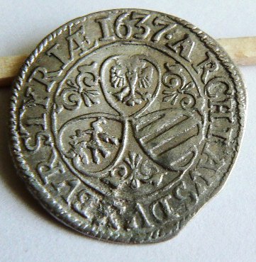 Ferdinand III. (1637 - 1654) 3 Krejcar 1637 značka - květina nad panovníkem Štýrský Hradec - Štýrsko Ag, prům 20 mm, váha 1,64 g