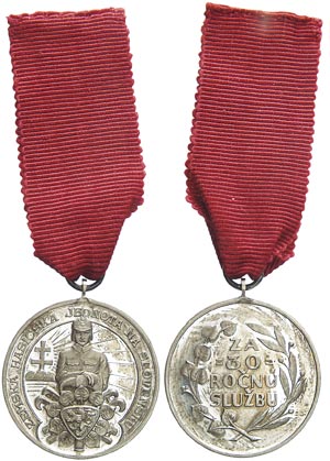 Zemská hasičská jednota na Slovensku b.l. - Za 30 ročnú službu. Bronz postř. 35 mm, pův. o., nepův. červená stuha