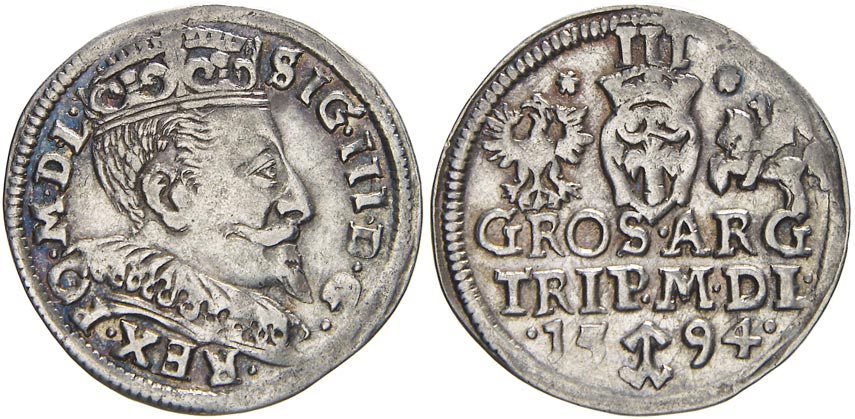 III groš 1594 pro Litvu, Wilno. Kop.-3523. n. nedor.