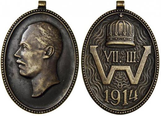Německo - Prusko. Med. na r. 1914. Portrét Viléma II. / koruna pod W