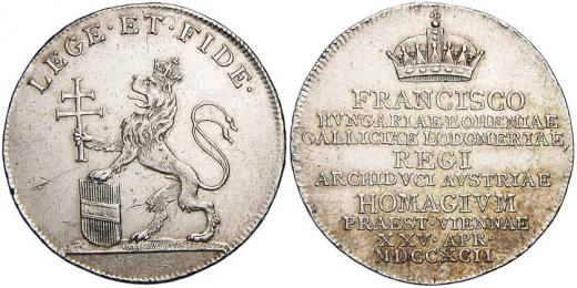Větší žeton k holdování dolnorakouských stavů ve Vídni 25.4.1792. Ag 25 mm. Novák-V/XVII/B2b. n. škr., rysky
