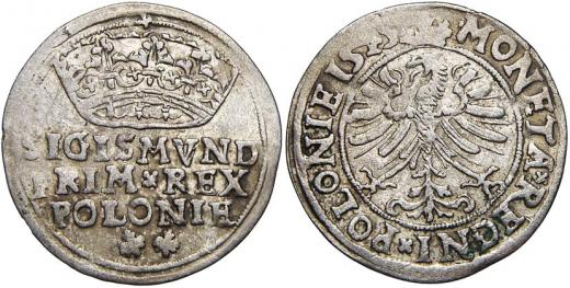 Polsko. Zikmund I. Starý (1506-48). Groš korunní 1545 Krakov. Kop.-424. n. nedor.