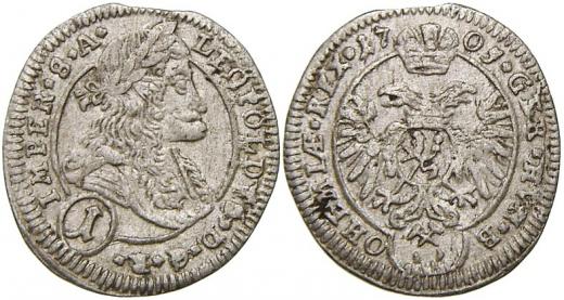 1 krejcar 1705 K. Hora - Wohnsiedler. Nech.-366