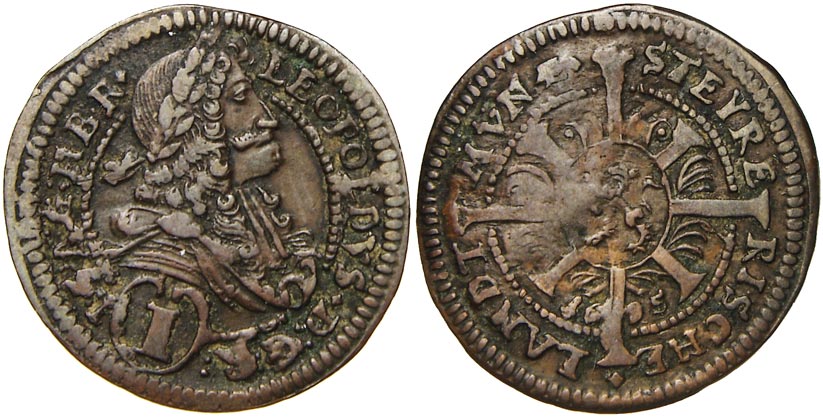1 krejcar 1695 Štýrsko, Landtmunz. Nech.-neuvádí. patina RR