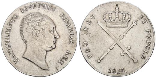 Maxmilián I. Josef (1806-25). Tolar korunní 1814. KM-358.1