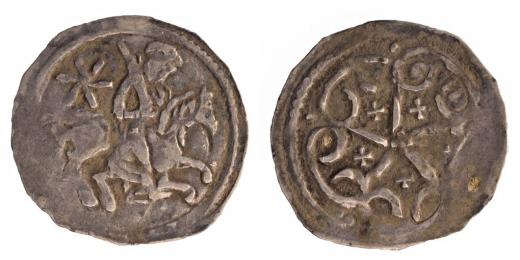Štýrsko, Otakar IV 1164-1192 fenik CNA B 73 mincovna Fischau varianta s šesticípou hvězdou za jezdcem 0,741g