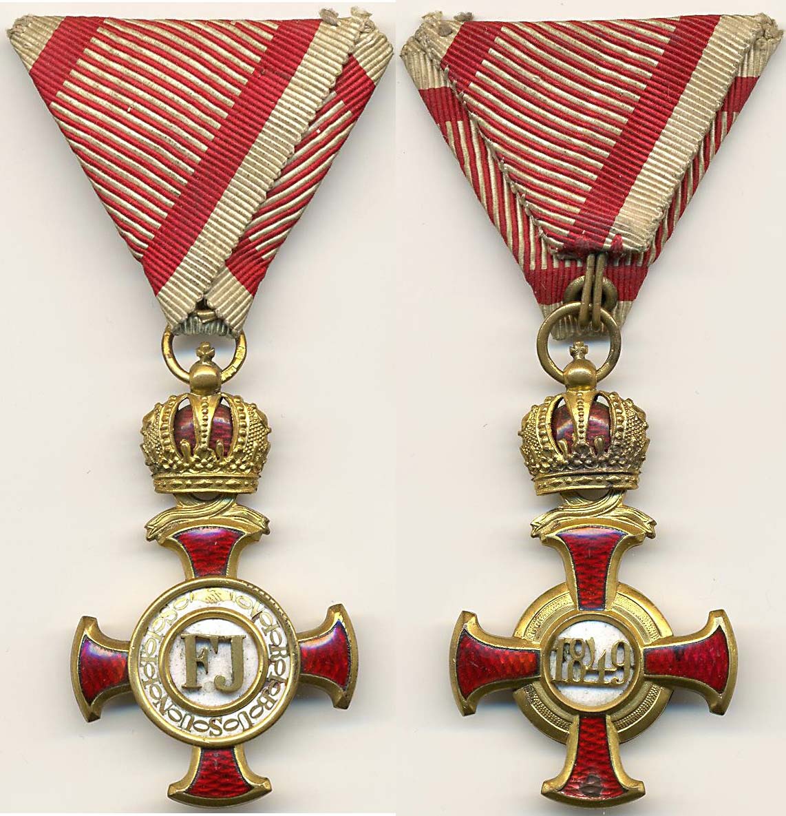 F.J.I., zásluž. kříž 1849 Ag, zlac. smalt poškoz. stužka,Viribus Unitis
