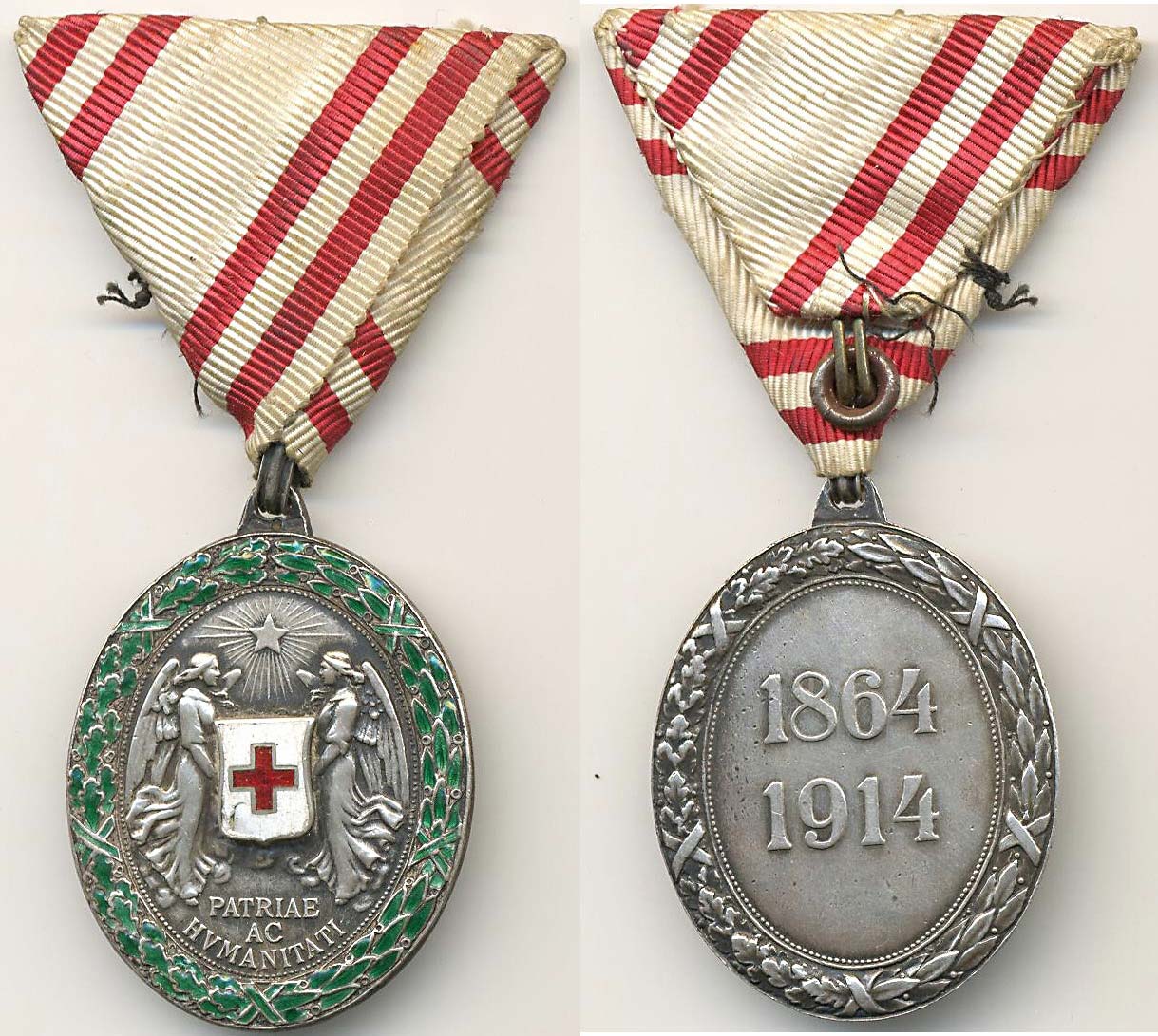 F.J.I., vyznam. Červený kríž 1864-1914, Patriae ac humanitati, smalt, Ag, 35x45, stuha