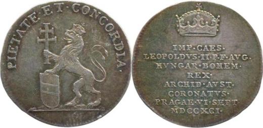 Leopold II. 1790-1792, korunovační žeton 6.9.1791 Praha, Ag 20mm