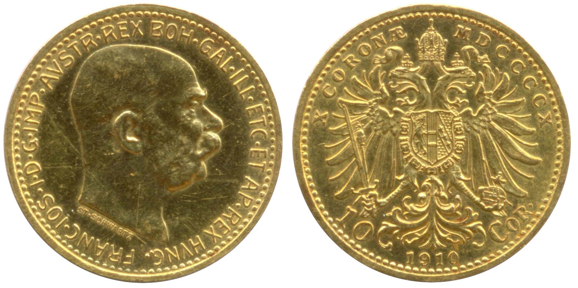 F.J.I. 10 koruna 1910 b.z. , n.škr.