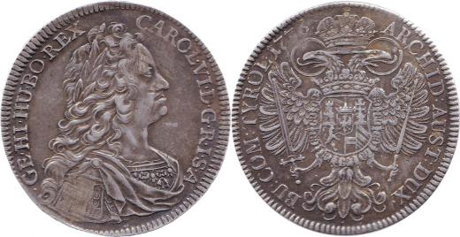 Tyroly, Karel VI. 1711-1740, tolar 1736 b.zn.,Hall, Dav.1055, KM.695.1, patina nep.just.