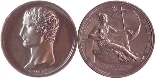 L: poprsí Napoleona zleva, dole DENON DIREXIT, sign. BRENET; R: sedící Fortuna drží cíp plachty nadouvané větrem, A LA FORTUNE CONSERVATRICE, L' AN 4 DE / BONAPARTE., sign. BRENET (1803-1804). Bronz, 33,3 mm hr.