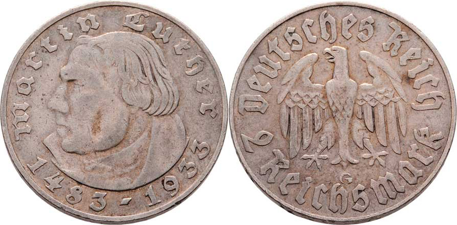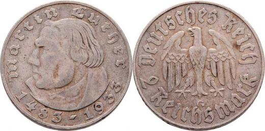 2 Marka 1933 G - Luther, KM.79 (Ag625, 61.000 ks), 7.858g, dr.hr., dr.rysky, pěkná patina R!