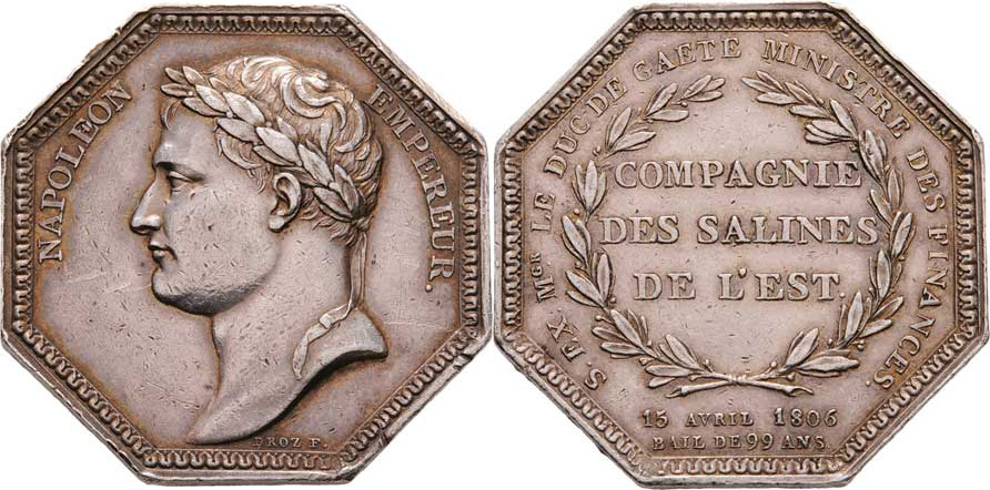 AR osmiúhelníková medaile solné spol. 1806 - poprsí císaře zleva, opis / 3-řádkový nápis ve věnci a opis, Sign., Ag 30x30 mm, 14.636g, Zeitz.0, dr.hr., dr.rys.