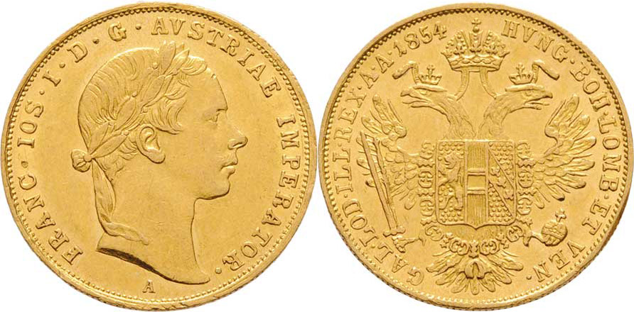 Dukát 1854 A, 3.479g, dr.hr., dr.rysky, pěkná patina
