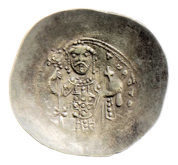 Histameon nomisma, Kristus na trůně zpředu, "IC-XC" / stojící císař drží labarum a globus, opis, podobný SB.1881, Sabatier.LI/16, 4.104g, mírně exc., patina