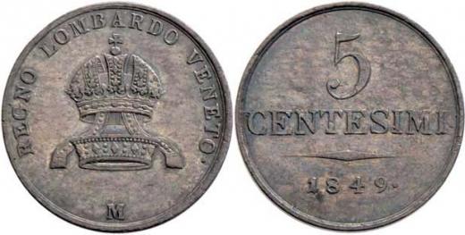 5 Centesimi 1849 M - větší typ, 8.924g, nep.hr., nep.rysky, pěkná patina R!