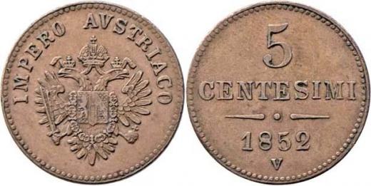 5 Centesimi 1852 V - menší typ, 5.436g, krásná patina