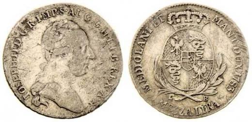 1/2 Lira 1783 LB, Milán, P.40, Cr.42, 3.032g, dr.vady razidla, nedor., just., dr.škr., patina RR!