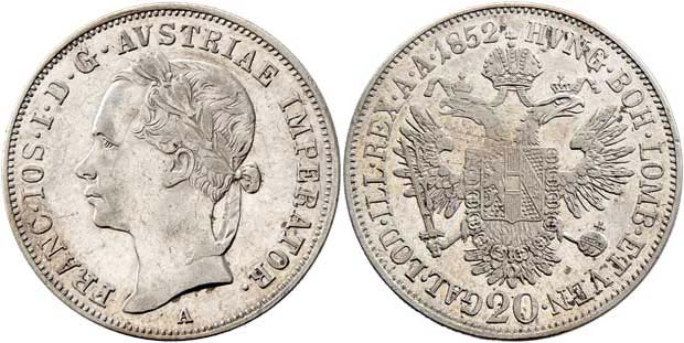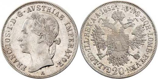 20 Krejcar 1852 A - hlava zleva, 6.625, nep.just., nep.hr., vlas.rysky, patina R!