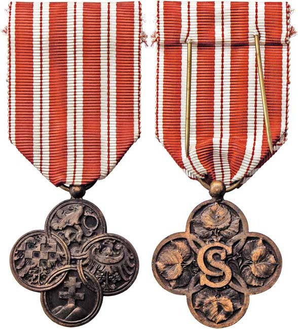 Československý válečný kříž 1914-1918, VM.5-II-B, II.vydání (1920-1938), tmavý bronz 37.5mm, kulovité ouško