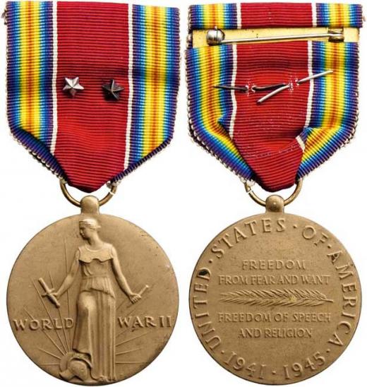 Medaile Za účast v bojových akcích II.světové války, Kerrigan.53a, na stuze stříbrná a bronzová hvězdička