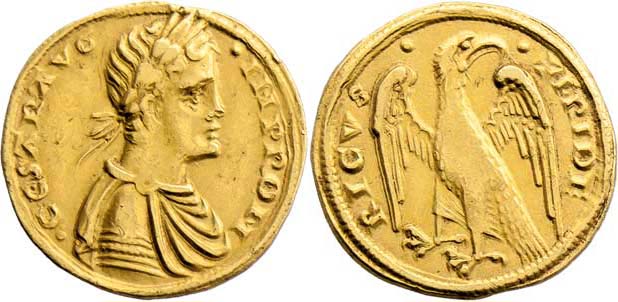 Augustalis b.l., min.Brindisi, portrét zprava, opis / sedící orel, opis, Fr.134, Spahr.98, De Wit.neuvádí, 5.244g, nep.vady razidla, pěkná patina RRR!